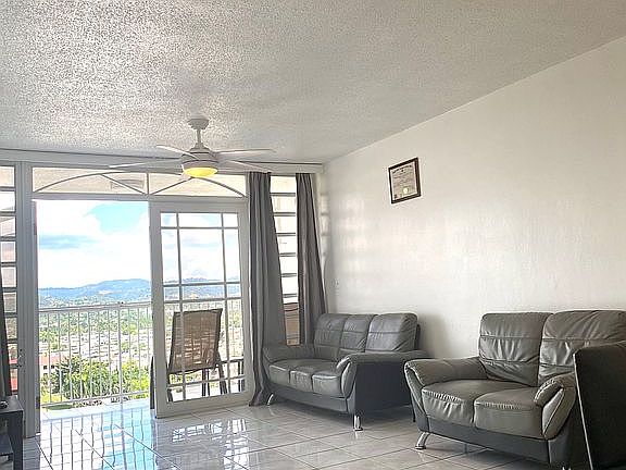 Cozy apartment in the San Juan metro area, 2 bedrooms, one bathroom, title floors, new appliances including 3 new high efficiency split-ac units, apartment has a fantastic view of the mountains and its located in a well run condo, with 24 hours security, swimming pool and rec area.