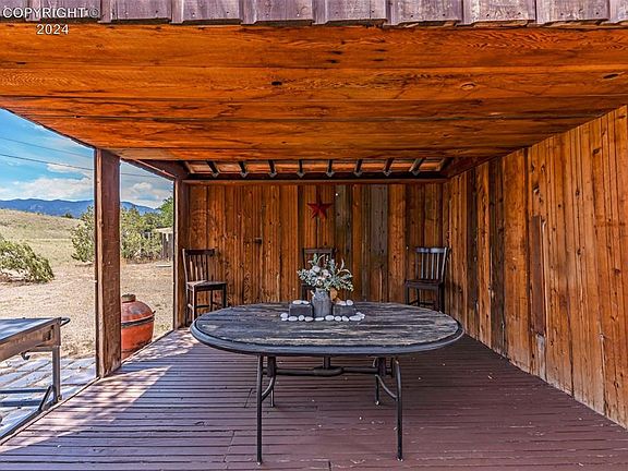 County living on 2.42 acres of beautiful Colorado skies and mountain views! This rustic charmer lies in historic Brookside and boasts tons of character! Step into the entry and walk under hand milled cedar beams that lace the open living and dining space. Custom barn doors throughout. The kitchen received a gorgeous update with solid surface countertops, a breakfast bar built for two, and an antique cabinet salvaged from the Florence city hall for an added touch of local history. Under your feet, you'll find reclaimed wood plank floors salvaged from a school gymnasium. Master bedroom suite has a sitting nook and a warm and cozy wood stove with private access to the outside. 3 additional bedrooms with the 4th bedroom including an awesome built in loft bunk, book shelf and desk! 1 full bath and one 3/4 bath with step in shower. Outside you'll be amazed at the potential! So many outbuildings to use how you see fit! The owners dreamed of making the historical outbuilding into glamping apartments. You can pick up where they left off, or use the outbuilding as a huge workshop for woodworking or tinkering on vehicles. It already has an auto lift! Start your own hobby farm with the barn and chicken houses. The possibilities are truly endless! Come snatch up your very own cabin away from the city that's still close to all the convenient amenities of Canon City and Florence!