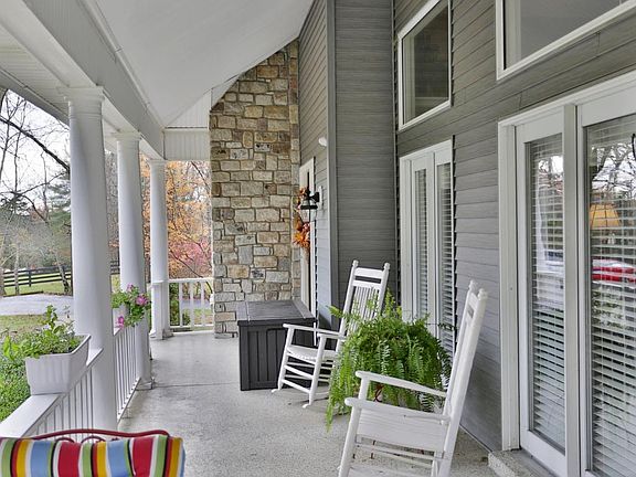 Welcome to this beautiful custom home nestled on 5+ wooded acres in Fisherville, recently featured in the Courier Journal's Home and Garden. This open yet cozy floor plan with soaring ceilings, vaults and loft offers every opportunity to enjoy the treed outdoors thru endless windows and doors. Enter the foyer from the covered wraparound porch #1. The 2-story great room with hardwood, 2-story stone fireplace and wall of built-ins provides the perfect gathering spot. A loft area with skylights overlooks the great room and accesses the floored attic (for future expansion). The elegant vaulted dining room with hardwood and transom windows is a perfect space for large entertaining.