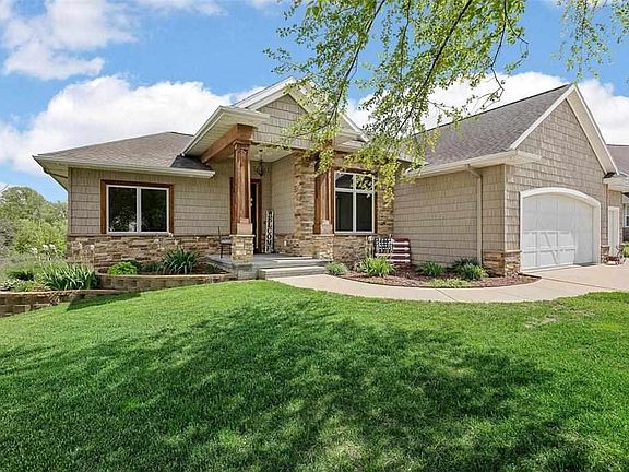 You’ll fall in love with this home the moment you pull into the driveway! This custom-built walk-out ranch has it all: luxury, efficiency, stunning views, all in a charming small town. On the main level, you’ll enjoy a spacious layout with high, tray ceilings, freshly painted walls, and elegant arched doorways. Indulge in the lavish master suite featuring in-floor heating in the bathroom and a jetted tub, or unwind on the private deck. The highlight is the four-season room—perfect for relaxation or a cozy den, it’s sure to become your favorite space. The basement is a retreat of its own, with a stunning full-wall stone fireplace, a wet bar with a commercial-grade beverage refrigerator, ample storage, and a walkout leading to a beautifully landscaped backyard with a patio and breathtaking views. Updates include: new Geothermal system in 2023, new gas oven/range 2023; fresh paint throughout the upstairs; staining of deck and front porch; True Green lawn care keeps the lawn lush and Midwest Pest Control keeps those pesky spiders away! Schedule your showing today to experience this remarkable home!