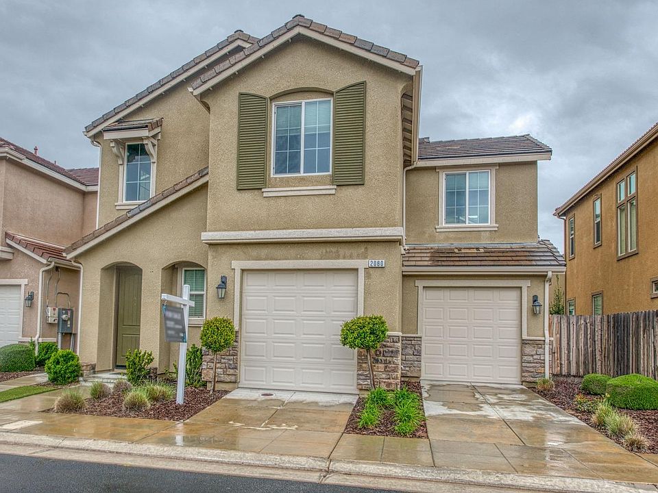 This stunning three bedroom and three bathroom home is completely updated with many desirable features. The main level's open floor plan showcases sleek wood-like tile flooring and a versatile bonus room suitable for an optional use as a play area for the kids or an office space. The kitchen has a fresh look with dark walnut-colored cabinets, quartz countertops, and a spacious quartz island. Dual pane windows and owned solar panels ensure exceptional energy efficiency.Upstairs, the three bedrooms, laundry room, and expansive master bathroom with a full walk-in closet await. The master bedroom with real hard wood floors also includes a balcony, conveniently the perfect spot to enjoy a cup of coffee in the sunshine. Located in a secure, gated community within the highly desirable area of the Clovis North High School District, this home's location is unbeatable. Don't miss your chance to view this remarkable property today!