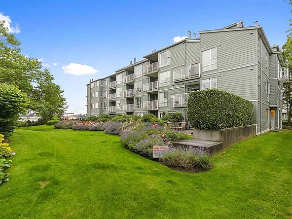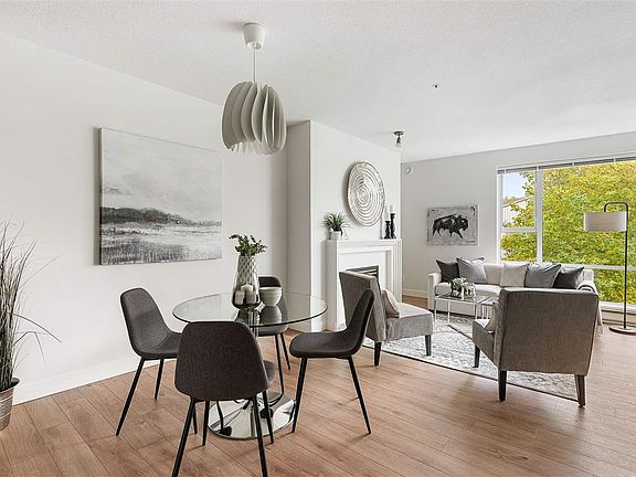 Every detail of this move-in ready home has been designed to offer style & contemporary elegance. The openconcept layout is bathed in soft natural light with large windows in every room, fresh paint throughout & new floors. This is your opportunity to enjoy show-stopping riverfront views in a peaceful and private setting while still being close to shopping and an easy commute from Downtown Vancouver, YVR, UBC, Metrotown and so much more. Professionally measured at 745 sq.ft. this layout offers generous living zones including an open-concept kitchen, dining and living room with a cozy gas fireplace. The kitchen boasts a breakfast bar, slate floors and new quality stainless steel appliances while outside, there's a large covered balcony with a barbecue allowed.