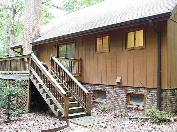 Rare property of 23.9 ac. in rural area offers extreme level of privacy, beautiful home, and walking/riding trails. Relax on your vast deck and enjoy the natural beauty of this wooded property which also features a small creek perfect for fishing. Included on this property is a unique chicken coop, a small play area complete with a sandbox, and huge basement for storage or entertaining. The forest offers wild blackberries and muscadine grapes. Low present use value taxes.
