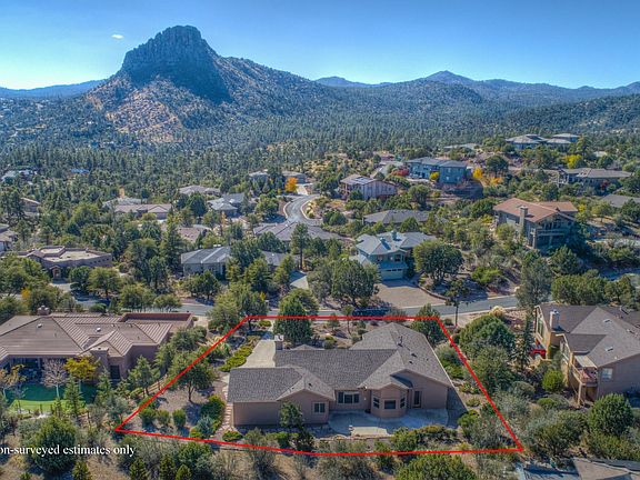 We invite you to explore this stunning Forest Trails home featuring dramatic south facing views of Thumb Butte and the Bradshaw Mountains. The split floor plan, 3 bed/2 bath home has been meticulously cared for and boasts extensive low maintenance landscaping. The great room is highlighted by a floor-to-ceiling rock fireplace complimenting large windows that frame the majesty of Thumb Butte. A wonderful flow connects the great room to the dining area, breakfast nook and kitchen as well as the front deck and back patio. The purposeful design provides a wonderful atmosphere for entertaining, inside and out. The over-sized 2-car garage offers bonus room for a workshop or storage. The home is ideally located close to National Forest and trails, just minutes from shopping and services.