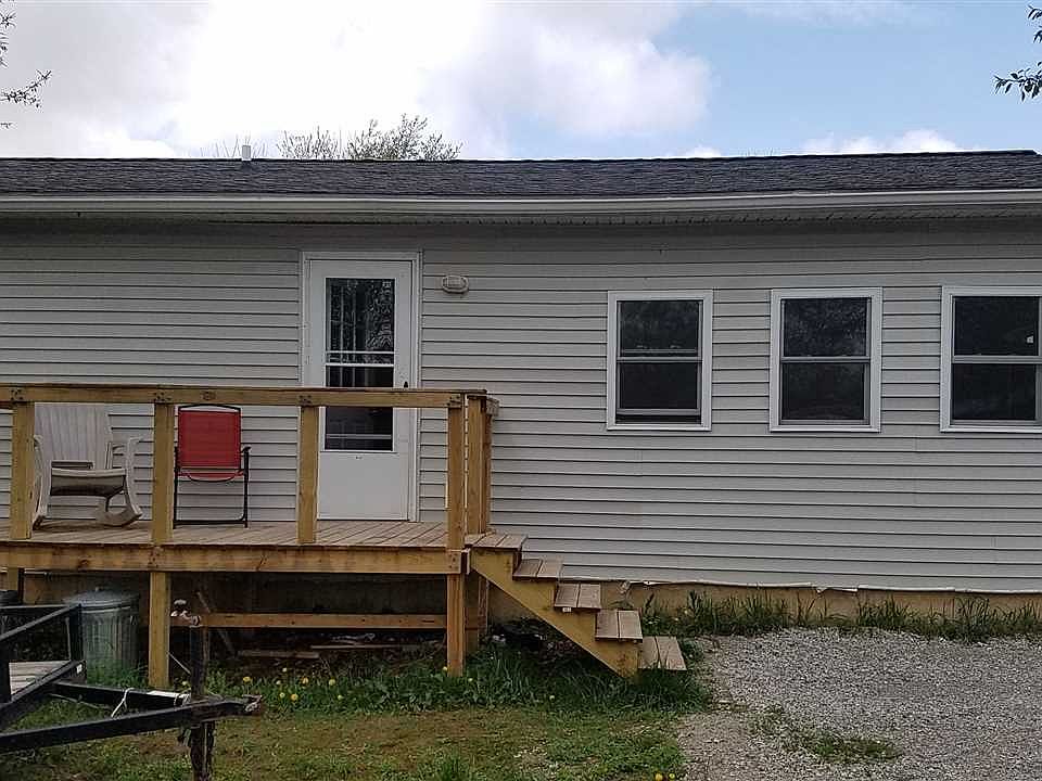 Great two bedroom, vinyl sided ranch, located in the country on almost three acres. Front and back wood decks. Open concept kitchen and living room. Built in 2006 and has been well maintained. Gravel driveway. Three car detached garage, wood utility shed and metal pole barn. Four foot crawl space with pea gravel. Plenty of room for a garden. Mature trees.