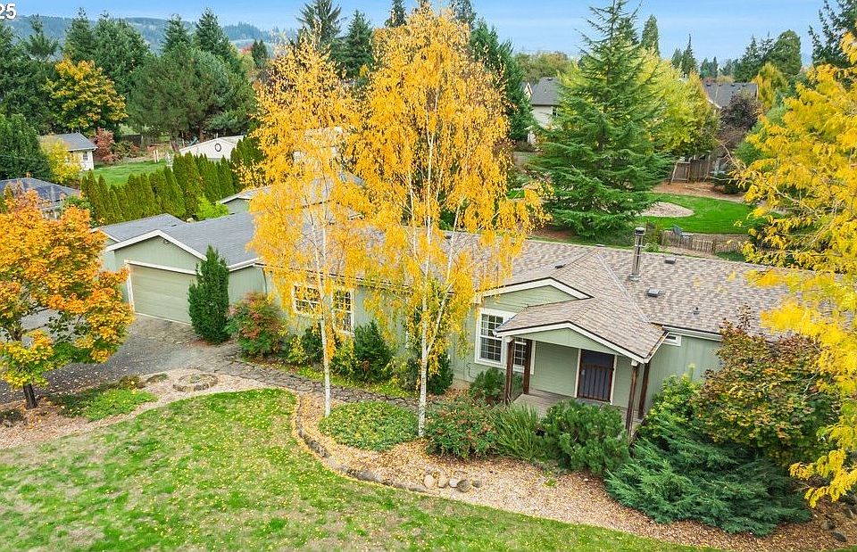 Incredible home on nearly 1 acre in the heart of Wine Country! Vaulted ceilings, cozy wood stove. 3 bedrooms plus an office/den. Updated bathroom, updated roof. Beautiful open kitchen! Primary suite with French doors, vaulted ceilings, spacious bathroom. Large storage cabinet in den! Beautifully landscaped dream yard with mature trees, RV parking, fence, multiple sheds/shops. Large detached 2 car garage. Walk to restaurants, shopping, George Fox University. Rare opportunity to own acreage in wine country at an incredible price!