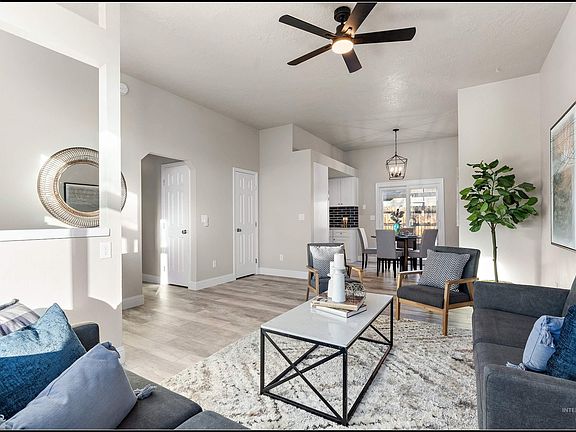 Updated home on a corner lot in NW Meridian, abutting a cul-de-sac, just blocks from Tully Park & short distance to Settlers Park! This beautifully renovated home offers fresh paint inside and out, luxury vinyl plank flooring throughout (cozy carpet in the bedrooms), and an updated kitchen with newer white shaker cabinets (soft close drawers & doors), elegant quartz countertops, striking blue subway tiles, stainless steel appliances, undermount sink, and a 5-burner gas range. The open floor plan features 10’ ceilings and abundant natural light, making the space feel even larger. The master suite boasts crown molding, and the bathrooms are updated with quartz counters and undermount sinks. Additional features include a whole house water filtration system, newer roof and HVAC, concrete patio with built-in blinds, extra paved RV/toy parking, and a storage shed. Plus, enjoy year-round lawn irrigation for only $49 annually (last year’s bill)! Don't miss out on this must-see home!