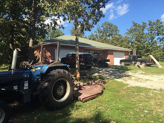 74130-This all brick country home could be your quiet retreat, with 2080 square feet of living space, a gas log fireplace, vaulted ceiling living room, and a hot tub on the patio. Just relax and let your hunter bring home the wild game. But don't worry about the mess, this property has a shop built with a cleaning station and a walk-in cooler. The home features 3 bedrooms, 2.5 bathrooms, an open living/dining room, 2 one car attached garages, and central gas heat and air. The property is 62 ac. m/l and features 3 pole barns, some fencing, woods, and a small pond.