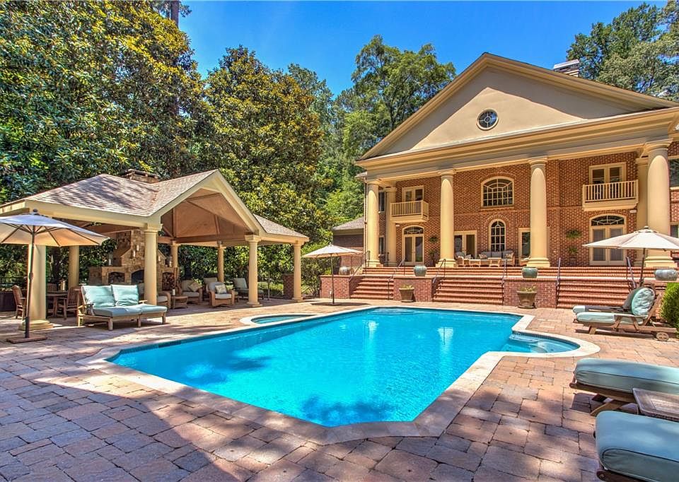 Serene and totally private on almost 3.5 private, wooded acres, this custom-built estate designed by Bill Harrison offers a rare combination of complete privacy and luxury living that meets the needs of the most discerning buyers. Every turn of the curving driveway unfolds with the beauty of landscaped grounds and gardens designed by Joe Gail that showcase a singularly unique home. The anticipation builds as you enter the breathtaking motor court, accented with trees and a fountain. Entering the home, you are greeted by a large foyer and graciously curving staircase to the upper floors. Timeless accents throughout the home include a unique door pediment that was rescued from an estate in England. A private office with built-in cabinetry is on your right; on your left, an expansive formal dining room that easily seats 14. The living room has soaring 24' coffered ceilings, a wet bar and and a wall of windows that overlooks the covered patio and pool. The bright, white kitchen boasts a Wolf gas cooktop and SubZero refrigerator, a large island, separate breakfast room and is open to the family room, making it a wonderful gathering spot for family and friends. A separate butler's pantry/catering kitchen allows for easy entertaining. The primary suite is on the main level, and includes a cozy fireside sitting area, private access to the back patio, and a large primary bath featuring a double-sized shower with multiple shower heads, large walk-in closets, one with a suitcase packing station. Upstairs are four spacious bedrooms, two with private baths and covered balcony overlooking the pool and two with a shared jack-and-jill bath. The terrace level was created by European wood craftsmen, resulting in an exquisitely finished living area that includes a cinema with stage, a wine cellar, a full bath with steam shower (and bonus dog bathing area!) as well as an exercise room that can be used as a 6th bedroom. Outside, a sweeping covered patio stretches across the back of the home, with sitting areas and dining area overlooking a fabulous entertainment experience, including a heated pool and a great pool house that includes a large seating area, a full bath, a wet bar and a spacious deck overlooking the woods (Note: Main level of home has 1 full bath and 2 half baths; the 2nd full bath refers to the full bath in the pool house.) The gazebo next to the pool is anchored by a large fireplace with several seating areas, and the elegant parterre garden provides a charming contrast to the lighted bocce ball court. Don't miss this opportunity to own this remarkable estate with a rare combination of privacy, luxury, and comfort. Secluded, but only moments to Dunwoody/Perimeter shopping, commuting, restaurants, parks, hospitals and more!!