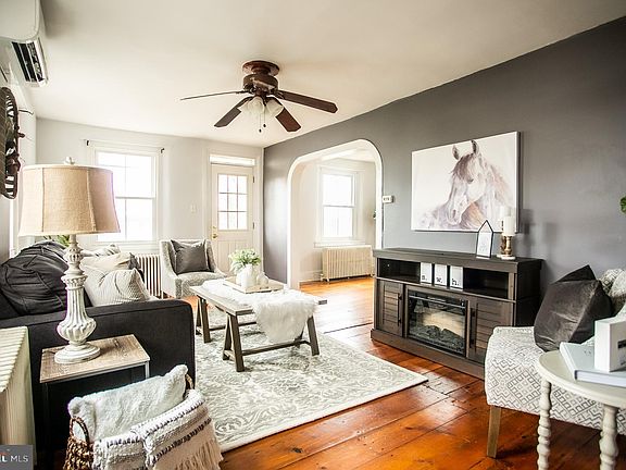An incredibly charming commuter's and hobbyist's dream is the best way to describe this beautifully restored farmhouse and pole barn less than two minutes from the Pennsylvania Turnpike entrance. Built around 1880, this 1509 square foot home retains its old world beauty from the stunning wide plank hardwood floors, while offering modern conveniences such as a large eat-in kitchen, replacement windows, energy efficient ductless heating and air conditioning system and house generator. There are two driveways behind the house off Brinkman Road. A brick and slate walkway leads you through the partially fenced backyard and to the home's most commonly used entrance in the rear. That takes you into the mudroom which doubles as a laundry room. From there, you can step into the spacious kitchen which is brightened by natural light streaming through the windows on three sides. There are plenty of cabinets, additional storage in the pantry tucked under the steps, an electric cooktop and wall oven, refrigerator and space for a kitchen table. A wide archway creates an open flow between the living and dining rooms which also receive plenty of natural light throughout the day. Upstairs, you'll find two bedrooms and a third room (which could make for great home office or nursery) and an updated full bathroom. You'll find a good amount of storage in the hall closet, built-in shelving unit and in the walk-up attic. The home has two heating sources -the oil-fueled furnace and a ductless mini-split system which provides heat and air conditioning to certain parts of the home. The basement, accessed through a hatch door in the mud room has been waterproofed. The home is hooked to public sewer while water comes from a well, although there is the availability of hooking up to public water if you choose. The old original smokehouse is currently used as a shed but it would also make a great artists studio. And if you're a hobbyist who needs space to store cars, bikes or to do some woodworking, you?ll love the approx. 30x24 pole barn garage with poured concrete flooring, electric and insulated. Open space next to the pole barn offers fun for the whole family. Notice image of parcel map that shows L-shaped lot.