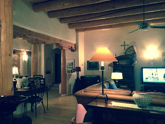 Amazing Home Designed with the chef in mind! Commercial Six Burner Wolf Range, Three Ovens, Beautiful Walnut and Birdseye Maple Cabinetry with a Matching Built-in Bar Tucked Nicely into the Diamond Plaster Walls. Amazing Pantry/Bake Center! Diamond Plaster Walls, Wood Floors, Beautiful Windows, Tongue and Groove Ceiling, Vigas, Niches. Master Suite has a SwirlWay Whirlpool Jetted Tub, Shower Includes Double Heads and Body Massager. New Stucco!