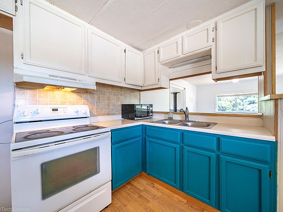 Cute place on 1.26 acre lot. 2 bedrooms, 1.5 baths. Detached 2 car garage and 2 animal shelter buildings. Mini-split Heat/Air, plus swamp cooler and woodstove. Front enclosed mud-room entry. Single wide mobile with stick-built addition. Inside laundry area. RV hook-up. Fenced in back yard for your pets. Roof has had rubberized roofing installed. Would be a great rental, or affordable home for yourself. Have a few animals and a garden here! Cash sale only, because of age of home.