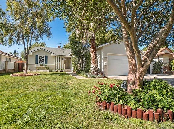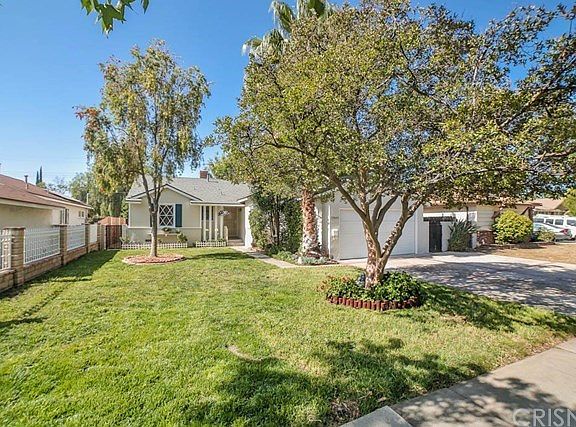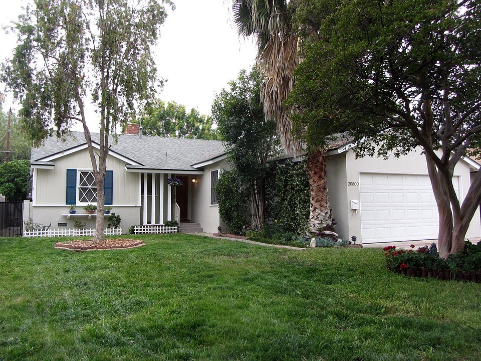 This charming Winnetka home is nestled on a large 8,025 square foot lot w/ freshly painted exterior, a newer roof, mature landscaping accented by Malibu lighting. The home offers 1,216 square feet of living space & is in ?move-in-condition?. The Living room features Venetian plaster & an L-shaped brick fireplace w/hearth. The formal dining area has lrg windows that bathe the room in natural light & are adjoining the lrg tiled kitchen w/tiled counter tops & comes complete w/gas stove, microwave, fridge & dishwasher. The adjoining laundry room features refinished cabinets & washer & dryer & direct access to backyard. The home's master bedroom features wood flooring & has en suite bathroom w/ jetted tub & beautifully finished cabinetry & walls. The other two bedrooms feature fresh paint & wood floors. BONUS ROOM: Which could be used as a fourth bedroom features laminate floors & French doors which open to a beautifully serene secret garden complete w/pond. The private backyard boasts a large patio which is great for entertaining & backyard barbecuing. A large lushly landscaped garden is a gardener's paradise with mature shade & fruit trees. Cntrl air & heat & ceiling fans in all bedrooms & dining room to provide year-round comfort along w/a 2 car garage.