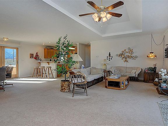 Nathrop, Colorado Home for Sale. 1928 SF 3 Bedroom, 2 bath home on 11.3 acres with 360 degree views of the Collegiate Peaks, Buffalo Peaks, Sangre de Cristo Mountains, and Aspen Ridge. Immaculately maintained home with large rooms and an open floor plan. Custom features include bay windows, tray ceilings, drywall throughout, upgraded insulation package, and expanded floor plan. Roomy and bright master suite with large bay window to capture the views. Property is well thought out and includes everything you need for vehicles, toys, and your RV. Over-sized 1008 SF garage is finished and heated. Complete RV hookup on opposite side of house so guests can plug in. Well allows for horses and lawn/garden. Centrally located in Chaffee County; 20 miles to Salida, 11 miles to Buena Vista. 3 miles to Princeton Hot Springs. Minutes to The Colorado Trail, The Arkansas River, Chalk Creek, and BLM and National Forest.