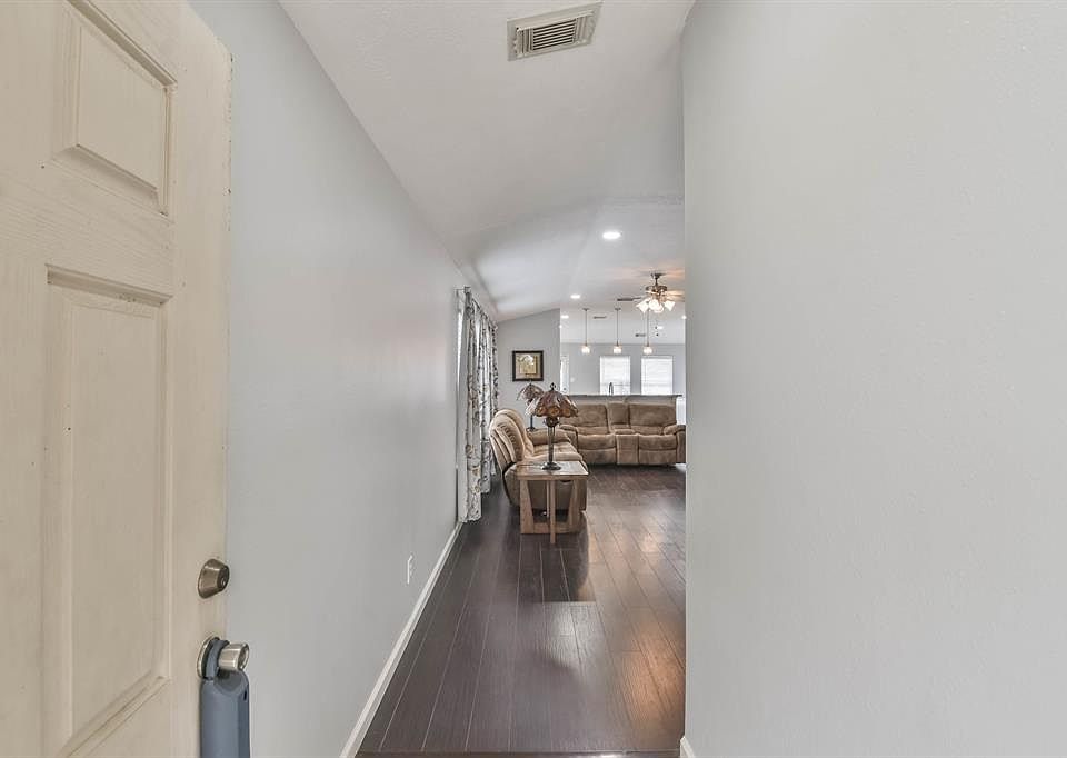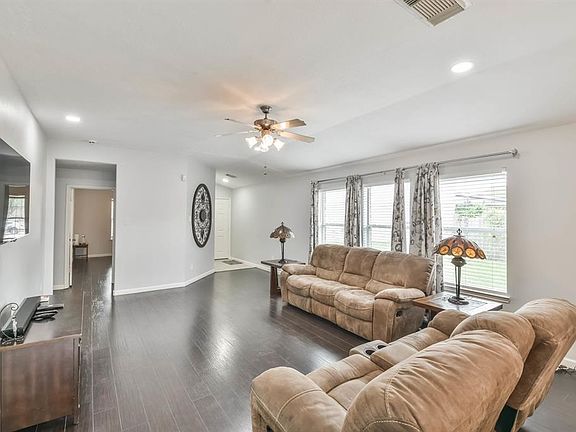 Don't let this massive lot pass you by! This lovely 4B/2B sits on a more than 10,000sf lot in the center of the cul-de-sac. It boasts of beautiful laminate wood floors, split floor plan & large master w/en-suite. The kitchen has been remodeled with gorgeous granite counter tops imported from Brazil, SS appliances w/gas range, built-in microwave, elegant pendant lights over the breakfast bar, white shaker cabinets w/crowns, brick-look tile back splash & there's ample space in the breakfast nook. The expansive backyard has a large deck & still leaves room for a pool, playground, outdoor kitchen or just about whatever your heart desires. You have the space to make your backyard a private oasis! The seller has moved out, which makes it even easier to show. Schedule your private tour today! This gem will be gone in a flash!!! ***Did NOT flood!!!***