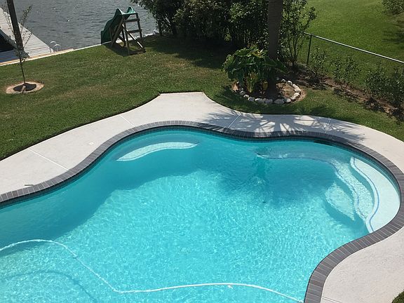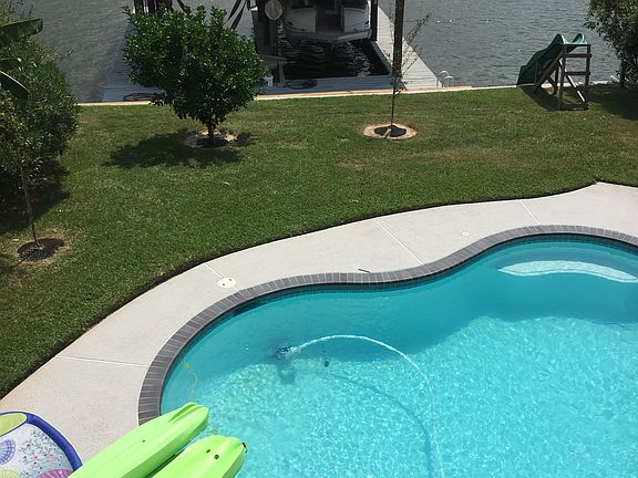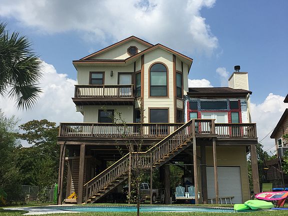 AWESOME WATERFRONT 3BR/2.5BA WITH POOL AND LIGHTED PIER WITH DOUBLE BOAT LIFT. The entire interior has been completely remodeled and updated with new WPC floors, all new custom cabinets and vanities with superior level granite tops, new bath tubs (one whirlpool downstairs), custom tile bath surrounds, new toilets, sinks and new PEX piping throughout. It also has a brand new fireplace tile and mantle wired to store TV boxes. New dimmable LED spot lights, new pantry and extra large water heater. Custom ELFA closets in all bedrooms. Jack and Jill configuration for bedrooms on first floor and master upstairs with private balcony. Underneath the house is a Hardi-plank garage with double overhead doors and elevated storage that is accessible via attic ladders and open sides. Also underneath is an open area great for entertaining and parties with a custom louvered half bathroom with toilet and urinal. All new windows and doors professionally installed in Q42012.