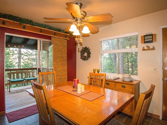 Darling, turn key cabin in the heart of Mi Wuk Village. Full bedroom and bath downstairs. Spacious bedroom upstairs PLUS loft that is referenced as 3rd bedroom. Tax records reflect 2 bedrooms. Photos speak for themselves... this is so cute for the price. Covered deck off dining room feels like you are sitting in a tree house surrounded by majestic pines and cedars. The perfect getaway for the perfect price! Don't miss the storage space below the house. Lot size is approximate. Sellers recently installed heat/air system. Most rooms have been painted a neutral color since photos were taken.