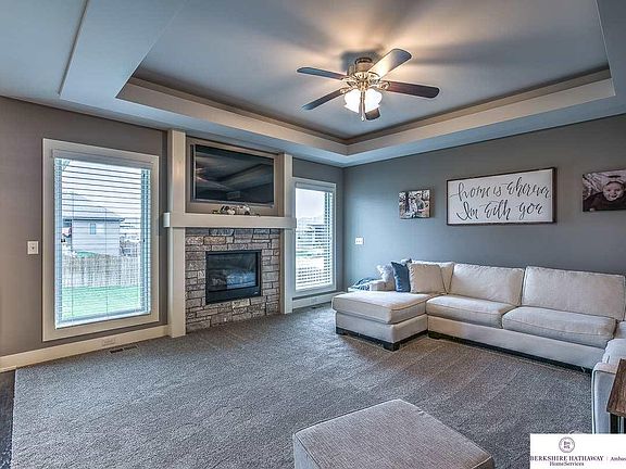 Stunning 4 bedroom, 3 bathroom ranch home located in Windgate Ranches. This contemporary open floor plan is loaded with features including hardwood floors, quartz countertops, soft close drawers, tile throughout, ceiling detail work and stoned fireplace. The spacious master suite includes a walk-in shower, dual vanities and a large walk-in closet which goes right into the laundry room. Finished basement has a 4th bedroom, bathroom and a huge rec room which is great for entertaining. AMA