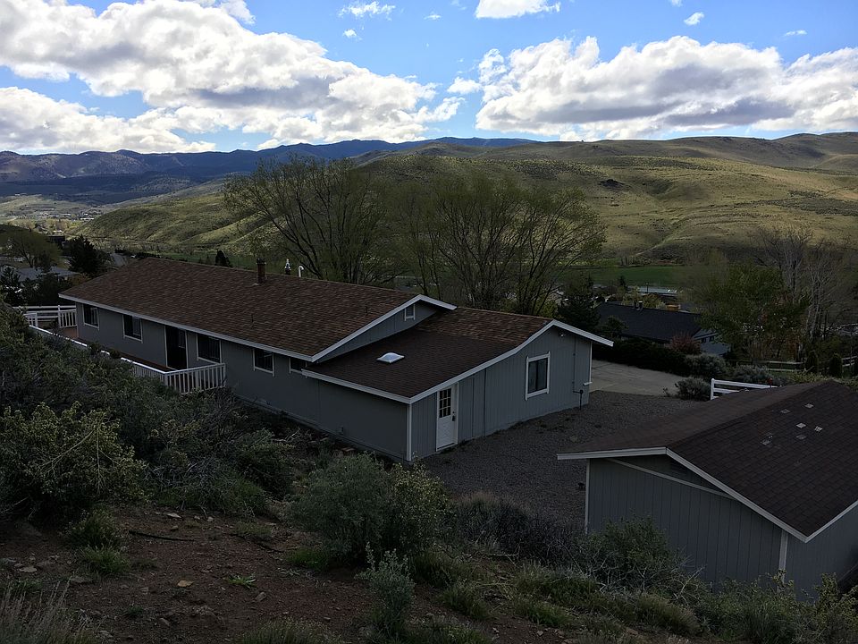 Pleasant Valley home featuring incredible unfiltered views, 3 car garage (2 attached/1 detached), wood burning fireplace, new interior and exterior paint, new flooring throughout, new granite kitchen and bathroom counter-tops, new appliances, and new furnace.