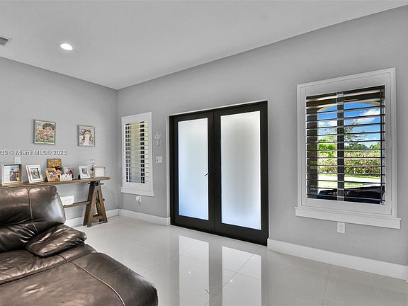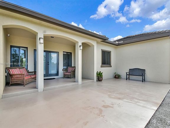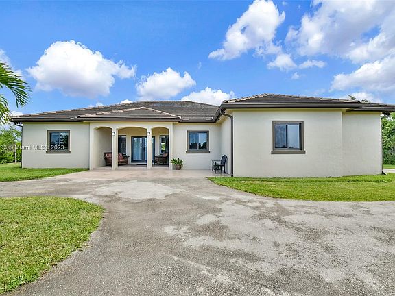 Welcome to this stunning 4 bedrooms, 3 baths custom built home with a total of 2980 sq ft in the Redland area sitting on 1.25 acres. This home offers a spacious and open floor plan. Built tough to keep you safe and ready for hurricane seasons, the media room is built entirely with concrete blocks all around and the trusses meet hurricane ratings creating an extremely safe place, the home has impact windows, doors throughout and an automatic transfer standby generator connected to a gas tank. This home includes 32 x 32 porcelain tile floors throughout the home, quarts countertops in kitchen and bathrooms, an island kitchen of your dreams, spacious with white wood cabinetry, self closing drawers, water filtration and water softener.
