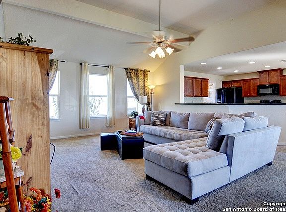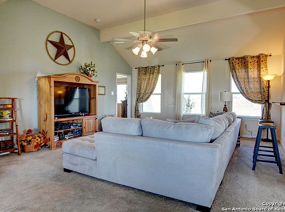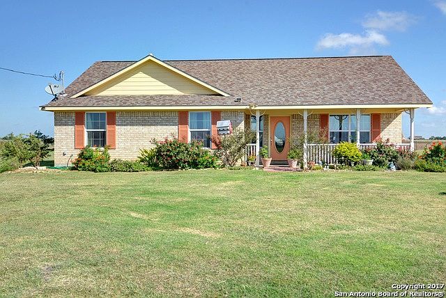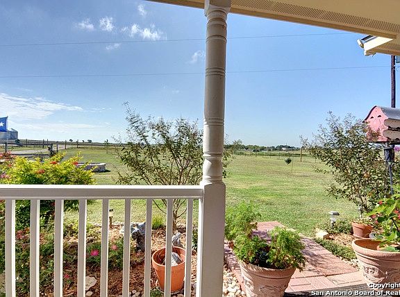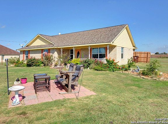 Lovely, light & bright 3 bedroom, 2 bath, home on one acre built by Tilson Homes. Open concept w/ spacious kitchen w/ granite, large living room, & dining area open to each other. Secondary bedrooms split from master. Master bath has large garden tub, dual vanities & his & hers closets. Large utility room w/ pantry. The land is completely fenced w/ gate. Large storage shed conveys. Travis Country has sq ft of home at 1590 which is incorrect. Per appraisal & builder, the home is 1810 sq ft.