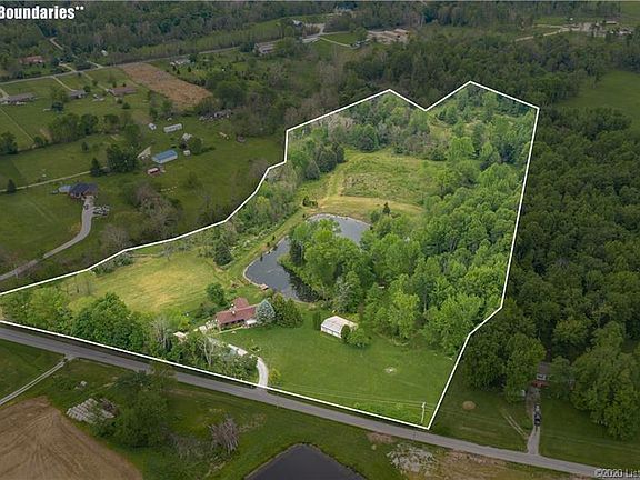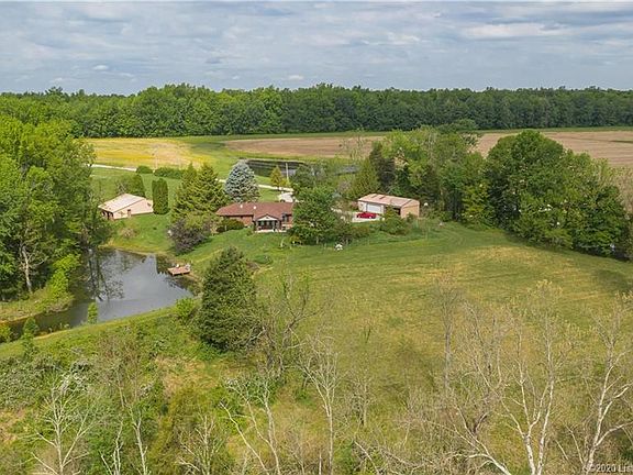 Custom built, updated one story home with a finished basement situated on 16 acres featuring a stocked lake and 2 outbuildings (with electric) on the property! The home had many updates in 2018, including roof, furnace, AC, windows, electrical panel, light fixtures, kitchen cabinets, appliances, flooring, and paint. The first floor consists of 3 bedrooms, 2 full baths, kitchen, dining area, living room, enclosed front porch, enclosed sunroom in the back overlooking the water, and a suite (that could be converted back to an attached garage) that has a family room, bedroom, and closet with a separate outside entrance. You also get another 1,000 sq ft finished in the basement with a family room, full bathroom, large laundry room equipped with washer and dryer, and an unfinished area that has a walkout door. Outside you have plenty of room to breathe, fish, hunt, work in the 30'x28' pole barn with a 22'x18' lean-to, or have a few horses with another 49'x39' pole barn with horse stalls in the back. There is electric in both pole barns and the pole barn/horse barn has water as well! Per Seller, the lake was man made in 2011, stocked with Bass, and ranges from 6'-18' deep (depending on the season) and spring fed. See agent remarks for more info on the property.