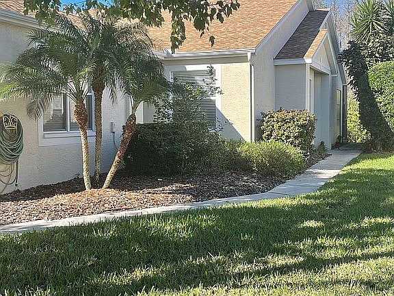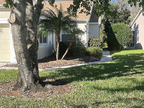 This Beautiful Villa Home is located in the gated community of The Grove Country Club, a 55 and older community. It is a well maintained home with 1451 sq ft with 2 bedrooms, office and 2 full baths plus double garage. Home offers a spacious open floor plan with a triple sliding door. Master bedroom has bay windows that face a very private wooded conservation area with an adjoining master bath with double sinks and large walk-in closet. The home also offers a separate laundry room with washer dryer included with built in cabinets for storage. There is a lanai newly screened in 2021 to relax and enjoy the view of the nature conservative. House has a combination of laminate wood floors, ceramic tile and Berber carpet. The community has well maintained golf course, heated salt water pool, club house with restaurant and bar. House has a 2-year-old roof, 3-year-old HVAC with 10-year warranty, 2-year-old hot water heater plus Water softener unit. The Groves HOA is one of the best which provides full land scaping, new roof every 17 years and repainting of the exterior paint every 5-7 years. The HOA as negotiated a bunk CATV plan with Spectrum that is a great savings to the residence. The Villa provides carefree living for residence that choose to live part time with no worries about lawns and security since this is a gated community.