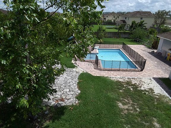 2014 home built to latest Dade county storm code with thick impact windows, upgraded impact French doors, all outside and inside LED lighting, Huge 3 car wide driveway with 70 feet of length plus it’s a corner home so there is enough parking to invite everyone with room to spare. House has a 2nd master bedroom/entertainment room. Beautiful open front and back yard. Prized Rainbow Eucalyptus Trees in front and back that were planted in 5 foot deep & 5 foot wide holes for strong roots and growth. Large pool with a 8x12 lay-in and extra wide paved deck wrapped around pool.