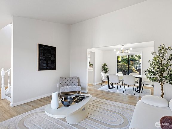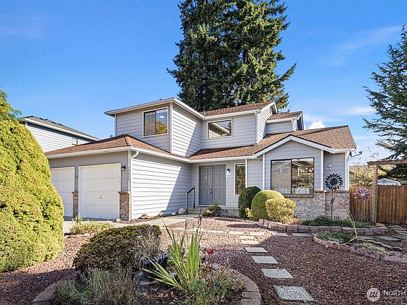 Impeccably maintained 2 story home in sought-after Poplar Ridge neighborhood. This tastefully upgraded home offers an open concept with beautiful new LVP flooring & interior paint throughout. The great room flows directly into the chef's kitchen with new cabinets, quartz countertops & large waterfall island. Formal living room, dining room & large patio are perfect for entertaining. Upstairs has a primary bedroom with an updated bathroom, 2 beds & full bath. All baths have new vanities, countertops & fixtures. 2019 furnace & water heater. 2024 new exterior paint. 2 car garage, & fully fenced yard with a large pond. Great neighborhood in a cul-de-sac. Near I5,405, Alderwood Mall, Costco, Lynnwood light rail, shopping, dining & more.