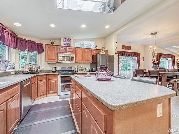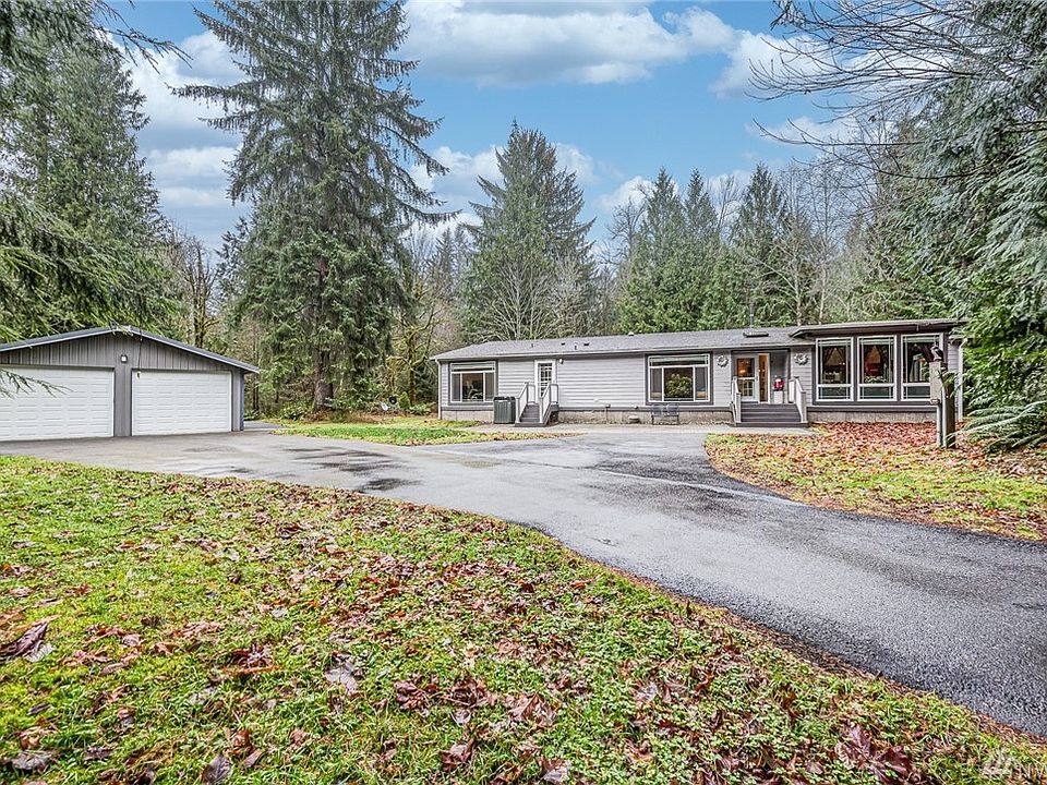 WELCOME HOME TO THIS IMMACULATE, OPEN, LIGHT AND BRIGHT MOVE IN READY ***5 ACRE*** PRIVATE & PARKLIKE OASIS! Very Spacious, Soaring ceilings and lots of floor to ceiling windows and skylights create So much natural light! Stainless Steel Appliances, Walk in Butlers Pantry, Custom Lighting, Five piece master bath, 50 Year Rubber Roof, Multiple Trex Decks, Three Car Detached Garage/wired for Shop, Paved Driveway and Ample Parking Space. Wooded, Super Private, Yet just over 10mins from town! Bring all your toys!