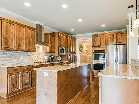 Exquisite hardwood floors, stylish trim throughout, Coffered ceiling & brick fireplace w/logs in the living room, Kitchen w/abundance of custom cabinets, granite counter tops,& stainless appliances. Master down w/new carpets & mst bath suite with custom tiled walk-in shower. Blinds & Built-in cabinets throughout the home. Large deck off back