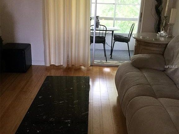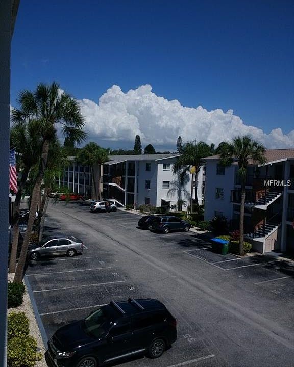 Rarely available top floor 2 bed 1 bath Condo. No footsteps overhead! Make this your winter residence or year round home. Parking space near elevator. This stylish condo is so affordable. BRAND NEW CENTRAL AIR CONDITIONING manufactured by CARRIER. Just a few months old. 10 year warranty transfers to new owner. Bamboo flooring throughout. Tiling in kitchen and bath. Freshly painted a neutral cream throughout just one year ago. Pretty crown moulding a plus. Bathroom extended and renovated cabinets have a dual vanity top incorporating a utility room and stackable washer dryer just a few years old. Quiet and private lanai overlooks woods. Cable TV with approx 165 channels included in low Condo fees saving you money. This active community has heated pool/spa, shuffleboard, clubhouse and grilling area with picnic tables. Planned activities throughout the year. Beautiful grounds. Great location near, shopping, bus lines,restaurants, medical facilities. Beautiful white sandy beaches just 8 miles away! What are you wanting for? Come check this gorgeous Condo out now! Furniture can convey in sale or not. Buyer's choice.