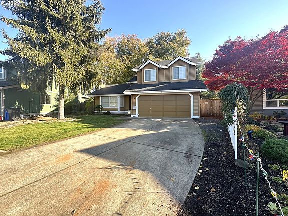 Super cute home with fantastic space! Great neighborhood with home being nestled in a cul-de-sac. Open living room with bay window, dining room with a slider to outside deck. Light & bright kitchen with eating area. Family room has slider to the outside covered patio and huge yard that is great for entertaining family & friends! Home additionally features sprinklers, fully fenced yard, storage shed, 2 car garage, concrete pad in back for storage and much more!