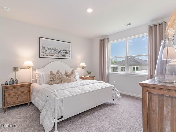 Waterside in the beautiful coastal town of Surf City presents the Aria. The Aria is our most popular one-story, 3-bedroom home, featuring an open-concept living area that leads to a kitchen equipped with Stainless Steel Appliances, including a smooth-top electric range, microwave, and dishwasher. As you enter, you'll find three bedrooms with a shared bathroom, while the Primary Bedroom, off the living area, offers a private ensuite bathroom and large walk-in closet. This home combines a functional layout with quality finishes, making it a great choice for those seeking a modern ranch-style design. Waterside Amenities include a swimming pool, clubhouse, fitness room, firepit, play ground, multi-sport court, sand volleyball and walking trails throughout the community. The white sand beaches and the beautiful bluish green waters of the Atlantic Ocean offer a perfect combination of adventure and relaxation. An almost year around mild climate means you can enjoy the warm salty air and all that the area offers year-round. Your new home at Waterside is less than a mile to the new high-rise bridge with a pedestrian lane where you will have sweeping views of the Atlantic when you are at it's crest. Waterside is an easy drive to Wilmington and Marine Corps Base Camp Lejeune and all of the conveniences are nearby. Home Is Connected® Smart Home Technology is included in your new home and comes with an industry-leading suite of smart home products including touchscreen interface, video doorbell, front door light, z-wave t-stat, & door lock all controlled by included Alexa Pop and smartphone app with voice! The photos you see here are for illustration purposes only, interior and exterior features, options, colors and selections will vary from the homes as built.