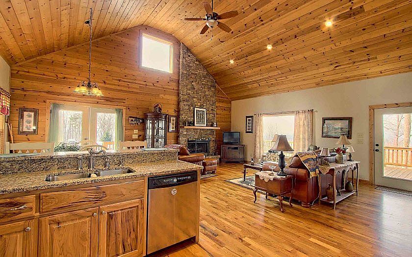 Some of the most AWESOME VIEWS Towns County has to offer. Beautiful like new 2/2 on one level w/crawlspace. This home sits on an absolutely wonderful lot, Craftsman Style home has open floor plan with white oak hardwoods floors, nice kitchen with custom hickory cabinets, nice blend of dry + tongue & groove, living room w/rock fireplace. Master suite has custom tile shower w/glass surround, jetted garden tub. Lots of windows for natural lighting. HUGE OVERSIZED decks & porches and outside storage shed and low maintenance yard. Don't miss out on this deal.