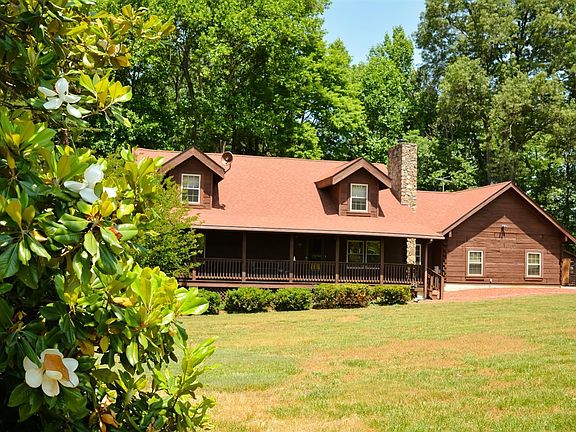 With mountain views & minutes from SML, this unique log home nestled on 3.9 acres in Bedford County is a must see. Huge covered rocking chair front porch greets you as you enter this wonderful home full of craftsmanship & charm. Spacious great room features vaulted beamed ceilings, hardwoods & new fireplace (Jan. 2021) accented by floor to ceiling stone. Well equipped kitchen boasts tons of cabinetry & counter space, stainless steel appliances (gas cook-top) & garden window opening to the beautiful large dining area. Large master bedroom accented by wood beams offers a sitting area with new carpet, huge walk-in closet & large 3 piece en-suite. Laundry room with washer/dryer conveying, half bath & large two car garage complete the main level. Upper level offers a large landing with built-ins perfect for the home office, 2 secondary bedrooms & another large 3 piece bath. Large covered back deck, gorgeous lawn, magnolia trees, grape vines & storage shed are all included.