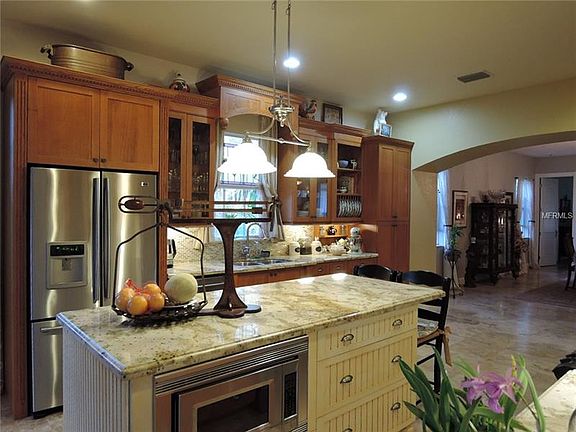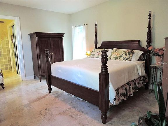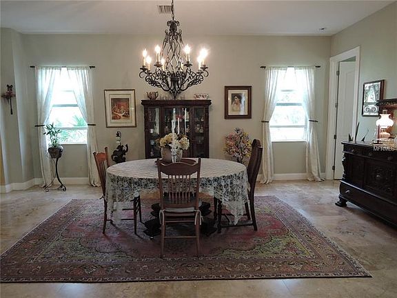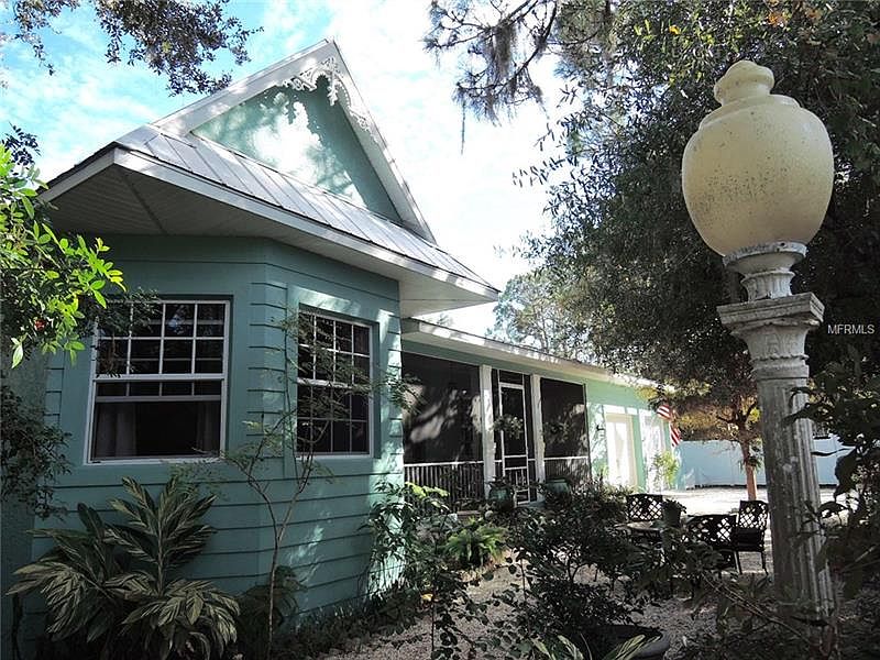 Old Florida Style custom built home located very close Manasota Beach on secluded treed lot that measures approximately 3/4 acre with large pond. Beautiful kitchen with granite counters, glass backsplash, lots of custom cabinets, butlers pantry with small office space, tons of storage, travertine stone flooring throughout, central vacuum, wood burning fireplace, 10ft ceilings, hurricane glass windows, two screened porches with one overlooking the pond, oversized garage. Seller is keeping the outdoor lamppost and kitchen antique light.