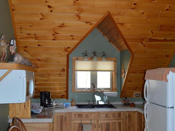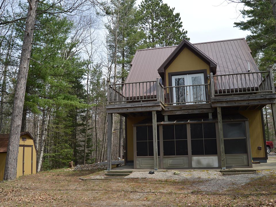 Unique cabin on 9.24 acres with appx 200 feet of frontage on Helmer Lake, a small fishing lake.