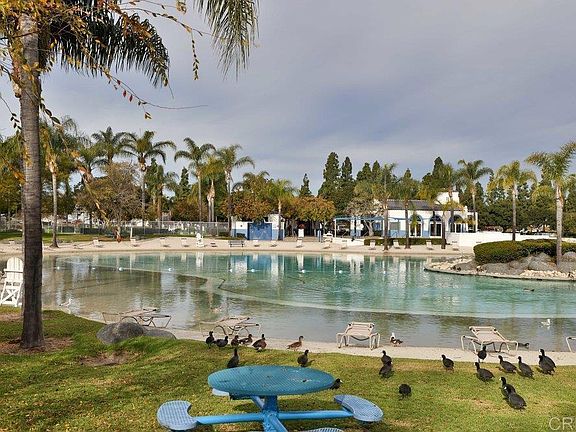 Live like you are on vacation! This beautiful ground floor unit eliminates steps! The best amenities in San Diego for the lowest master fee- a 14 acre lake where you can fish, paddle boat or stroll. A fabulous swimming lagoon with a sand beach rivals a tropical paradise. There are 2 Camelot pools for your enjoyment and additional master Jr Olympic size pool and lap pool. all also have hot tubs . Play tennis or pickleball? You are all set! Neighborhood playground and basketball court. The master hoa hosts fun activities. The inviting patio adjoins a green area and you can lounge enjoying the sounds of birds singing sweetly. New Luxury vinyl plank flooring makes this home elegant and easy to maintain. You have a private carport (#305) and additional open parking. Black and stainless appliances. A cozy fireplace gives ambiance to the beckoning living room. Primary bedroom and secondary bedroom adjoin the green space for relaxing views. The larger bedroom has a huge walk in closet. Laundry area in unit. An outside storage area off patio is so handy! Trader Joes and Sprouts walking distance.. easy access to 125!