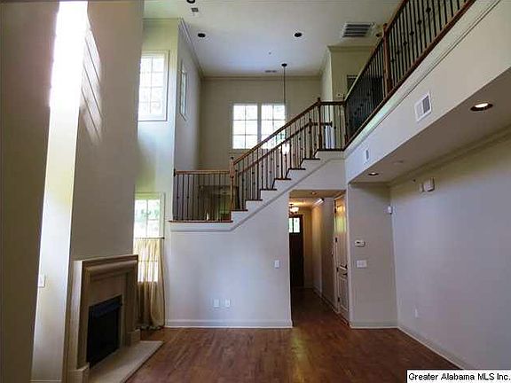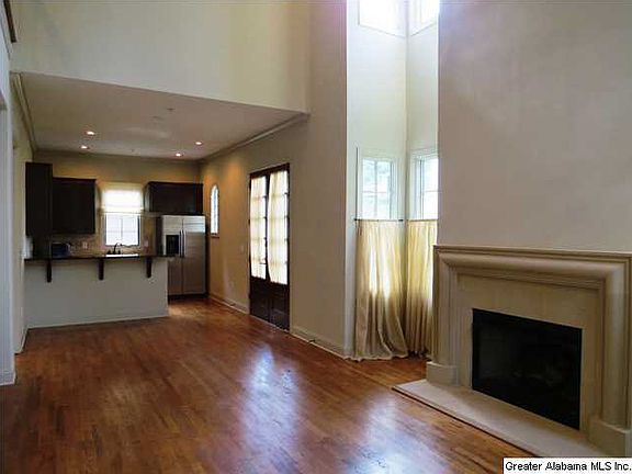 Beautiful, Private Hollywood Villa unit! This stylish condominium with a townhouse floor plan has a grand entrance with 20 ft. ceilings. Balcony bridge runs the length of the house and overlooks the great room, dining room and kitchen. Lots of natural lighting to show off gleaming hardwoods in living areas with carpet in bedrooms. Open floor plan with French doors to private, side balcony. Kitchen has granite countertops, stainless appliances, breakfast bar, and gas cook top. Master suite on the main level with double vanities, garden tub, separate shower, walk-in closet with laundry. Upstairs are 2 bedrooms with 2 more full baths. One car attached garage. Walk to elementary school, the Piggly Wiggly, numerous restaurants and downtown Homewood.