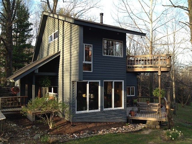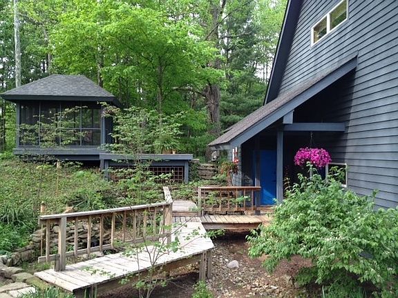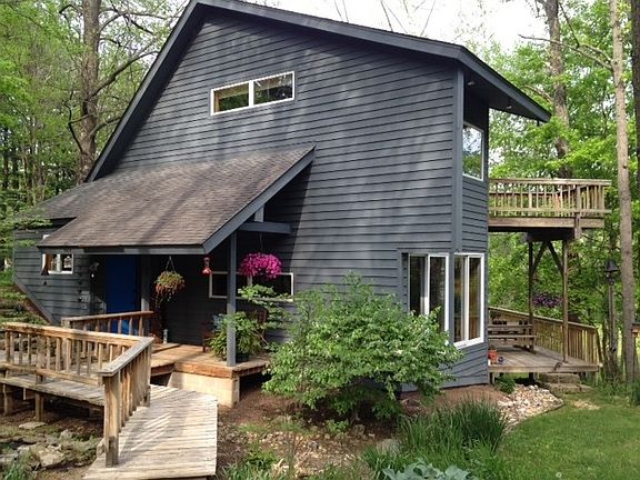 A COUNTRY JEWEL all with CITY CONVENIENCE! A Colorful & Open Floor Plan plus Flooded with Sunlight, this Energy-Efficient home features tree-house views of the Peaceful Nature that surrounds you. This property designed & built by Stone Cabin Design includes a Unique and Charming "Passive Solar" home with multiple Decks and Screened-in Gazebo, a separate Limestone Cabin, and an Awesome 5,042 sq.ft. Workshop....all on a private 13.7 Acres. The home offers high volume ceilings (knotty pine in Master Bedroom), a Mud room with built-in lockers & bench seating, plus a comfortable Loft, perfect for an Office/Study or Art Studio. Kitchen features Hardwood floors, Corian counter tops & Stainless Appliances which includes a commercial "Viking" brand gas stove/oven with vented hood. Kitchen cabinetry made of Boire and Wenge wood from West Africa. Hardwood floors and trim on main level are Red Oak. The trim, bathroom cabinetry & banquette seating in Dining Rm are Cherry wood. Brick flooring in Dining Rm, Slate & Hardwood Living Rm, Sassafras Hardwood Master Br & Ceramic Tile Entry & Full Bath. Anderson windows throughout. Master Bedroom has a walk-in closet, access to private Deck & Loft area. Living Rm features 2 walls of built-in Bookcases and Shelves, plus built-in Entertainment Center and a Wood-Stove that doubles as a Fireplace too. The house is built in such a way that if you choose too, the wood-stove will heat the entire house and helps save on utility cost. The property is serviced by CITY WATER, but also has a well. There are 2 septic's, one for the house and one for the shop. The house, shop and cabin are all metered separately for electricity. The shop is heated & cooled, on a concrete slab, insulated, has an upper level office/reception/conference room area & half bath. The stone cabin was remodeled in 2000 and features a covered front porch, carpet, built-in cabinets & desk, Pella windows and is heated & cooled. The wooded acreage is complete with walking and riding trails. Just over the Monroe County line and convenient to McCormick's Creek State Park and only minutes to Spencer or Ellettsville. A 30 minute commute to the Indy Airport or 20 min to Bloomington. An easy commute to Crane & I-69/HWY 37. See attached amenities sheet and ways in which this home is energy-efficient. Included in sale: Dining room table, picnic table, master bedroom dresser in walk-in closet. Ask me about this properties development potential.