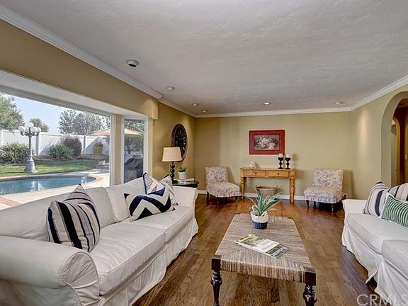 This adorable single level home sports a wonderful expansion that doubles as a guest quarter, in-law suite, business studio, media room or kid's playroom! Included in this space is a bedroom, bathroom and storage galore. Imagine hosting team meetings, slumber parties or family birthday celebrations that can easily flow outdoors to the lovely private backyard. Or if you are looking for a place for an in-law or a millenial who's "come home" for a bit, then this is the area for them. Maybe you are looking for a place for 6 cars with a high ceiling for a lift? This has room for that! The spacious main living and dining rooms have a large slider and windows that not only makes the home light and bright but affords you the beautiful view of the backyard. Outside you will find a sparkling pool and large patio area that is perfect for summer entertaining. All of this living area plus the spacious bedrooms provide plenty of space for the whole family. This home is in one of North Tustin's most sought-after neighborhoods and is walking distance to Tustin Memorial Academy; a blue ribbon & award winning elementary school! Walk the dog or play catch with Junior at the adjacent school play yard. No HOA or Mello-Roos.