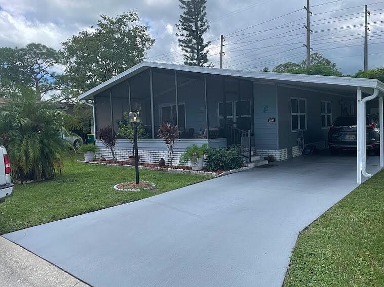 Beautiful 2/2 with a carport, large screened front patio. Features include an open floor plan, 1 year old AC, newer windows, spacious kitchen and storage, upgraded baths, Roomy bedrooms. The home also features a separate AC room off the carport perfect for an office or a she shed or man cave. The back yard is large and private and plenty of room to walk your dog. Nicely landscaped and the home shows well. Centrally located close to shopping, dining and the beach, I-95. come take a look!