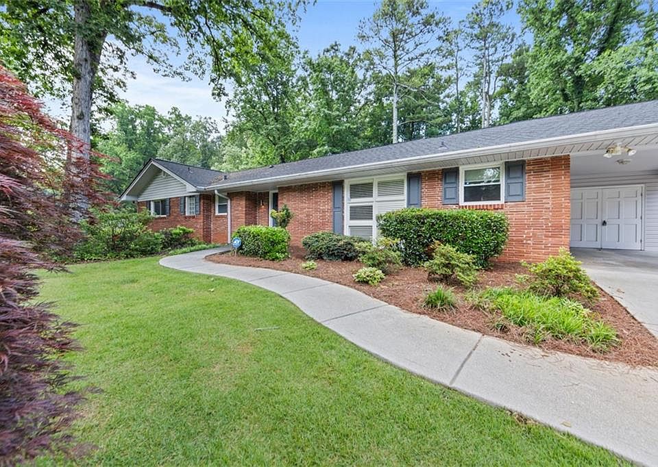 Incredible outdoor oasis--outdoor living at it's finest!! Curb appeal galore, beautiful original unpainted roman broadside brick greets you upon approach. Enjoy a private oasis and city living with this charming mid-century ranch located in the coveted Leafmore subdivision. Conveniently located to Emory, CDC, CHOA, a few minutes from Toco Hills, and easy access to I-85. Situated in a quiet cul-de-sac on a large and private lot with an inground pool & spa. Beautifully landscaped yard with expansive patio, outdoor fireplace, and screened in porch ideal for entertaining. Relish the Pebble Tec pool to cool off during those hot Atlanta summers, or turn on the heater to use year-round with the jetted spa. Eat in kitchen with pantry, stainless steel appliances, granite counters, and double ovens. Remodeled bathrooms with heated floor in dedicated primary bath. Original hardwoods on main level, tiled kitchen and basement. Updated recessed lighting, wood burning brick fireplace with an attached charming planter. Walk out to screened in porch or patio with outdoor fireplace and gas grill. Living and screen room has a built-in speaker system. Walk out basement provides additional living space, and ample storage areas as well. Covered carport with additional parking area, and keyless entry directly into kitchen. House roof replaced back half of 2021, shed roof replaced in 2023. Taxes will be lower with Homestead exemption. Don't miss your chance on this beautiful Mid-Century marvel! Open to seller financing--ask for details.