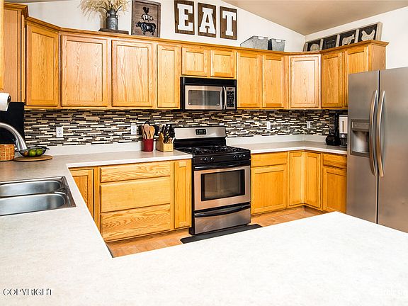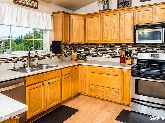 Don't miss out on this spacious 2311 sq. ft. open concept 4 Bedroom and 3 bath home, complete with separate family room. Kitchen efficiency includes pantry. Master bedroom features bay window. Jacuzzi tub in master bath. Check out the mountain view and Lucille Creek running through the back yard. Tons of storage with two sheds. RV parking. Sewer maintained by City of Wasilla.