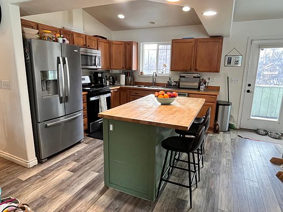 Large single family home with beautiful mountain views! Back of the house faces south, with wonderful sunshine, especially throughout the open family room and kitchen and primary bedroom. One of a few fenced and flat yards on the street, with a big front porch for enjoying the midnight sun (or the aurora borealis!) Finished basement with a bed, bath and wet bar, as well as substantial crawl space for storage. Photos are a mix of the listing at time of purchase and personal photos. Close to Alpenglow Elementary, less than 15 minutes to Fort Richardson gate, quick access to the Glenn but also a quiet neighborhood with access to maintained walking trails and close to the river. Renter responsible for utilities and adhering to the HOA rules for the property. (No parking of RVs or boats for more than 72 hours, maintaining grass in the summer) No smoking. 2 cars maximum parking in the driveway. Dogs considered. 1 year lease required.