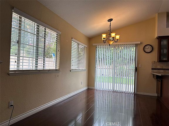 Step inside to discover an airy and bright open floor plan highlighted by soaring vaulted ceilings, gleaming wood floors, and a cozy fireplace that creates a warm and inviting atmosphere. The elegantly designed kitchen showcases granite countertops and backsplash, ample cabinetry, stainless steel appliances, recessed lighting, and a delightful kitchen window overlooking the backyard. The kitchen opens seamlessly to the dining area, offering easy access to the backyard, ideal for entertaining.