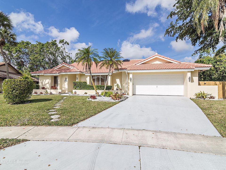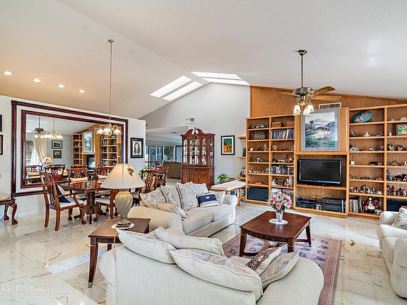 Sited on a cul-de-sac in the gated enclave of Estancia West, this 4 bedroom, 2.5 bath pool home has 2,584 square feet of air conditioned living space and 3,415 total square feet. This updated one-story home features a sunken living room with custom built wall unit and vaulted ceilings; beautiful eat-in kitchen with maple cabinetry, granite counters, stainless steel appliances, breakfast bar, wine cooler and cook's island. The spacious master suite has an updated bathroom with granite vanity with dual sinks, and sliding doors that lead out to the screened pool and patio area. Other features include a brand new roof, a stack bedroom plan, skylights, a 2 car garage and a long driveway for 4 or more cars.