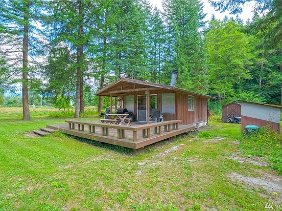 Don't miss this opportunity to own a quaint cabin & bunk house on medium bank river on the North Fork of the Stilliguamish. Fish from your own back yard. Main cabin has a large living room, bedroom, full Kitchen & 3/4 bath. Separate bunk house is great guests that want a little peace & quiet away from the living area. Over 1/2 acre leaves plenty of room for badminton or horse shoes & still have space to relax & enjoy a bbq or campfire. Enjoy your own private get away or reside here year round.