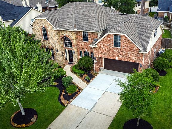 With eye-catching curb appeal, this 4-bedroom, 3.5 bath home, located in the master planned community of Windrose is a true beauty! Brick & stone exterior, mature trees & easy-to-maintain landscaping provide a warm welcome. Wood-look tile flooring on the 1st floor for great style and easy upkeep. 2-story family room is the heart of this home w/gas fireplace & custom entertainment center built specifically for this room. Double doors open to the study off the foyer. Open kitchen w/lots counter space, center island, painted cabinets, ss appliances & walk-in pantry. 1st floor owners retreat w/ensuite master bath which include a new frameless shower, jetted tub, double sinks & walk-in closet. Secondary bedrooms w/ large closets & 2 full baths plus game room on 2nd floor. Excellent storage space! 3 separate attic entrances. 3-car tandem garage. Generous back patio and lots of space for a soccer game, trampoline or play equipment. Walking distance to elementary school.